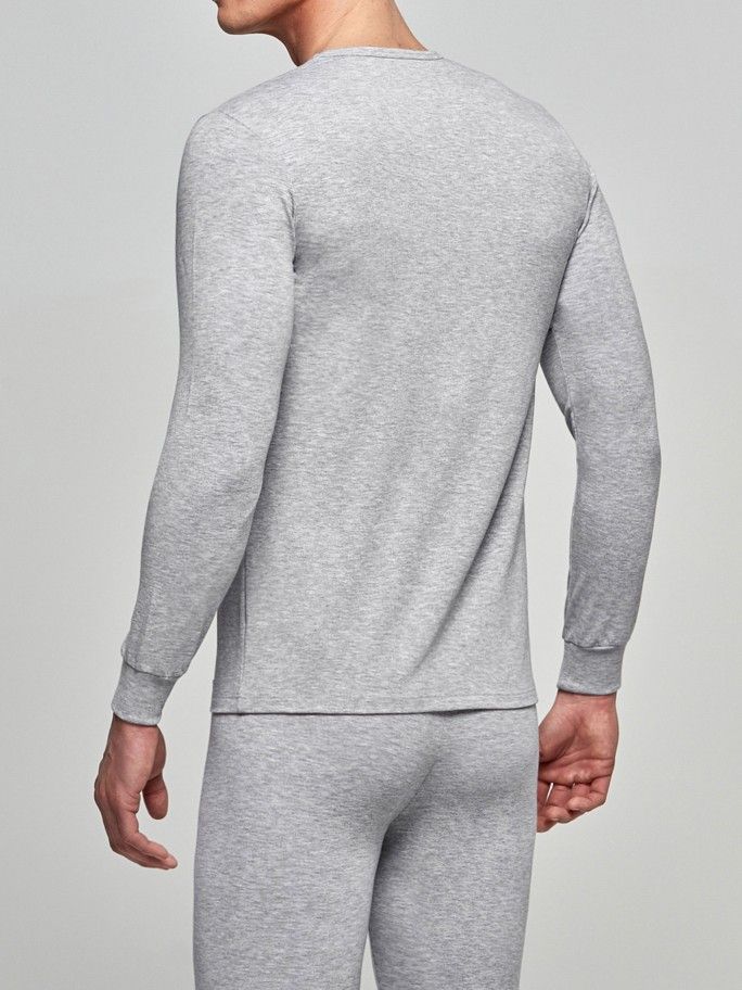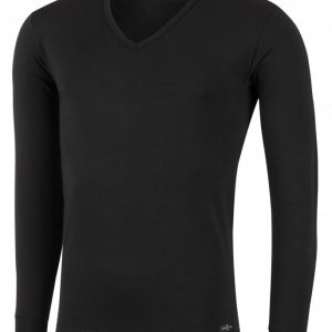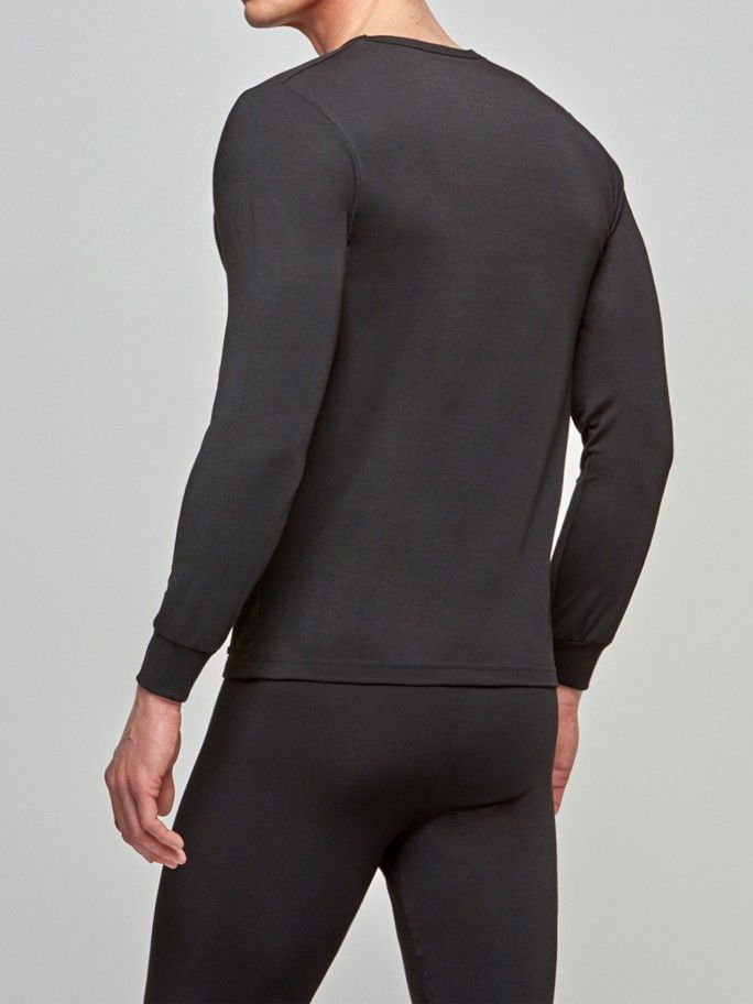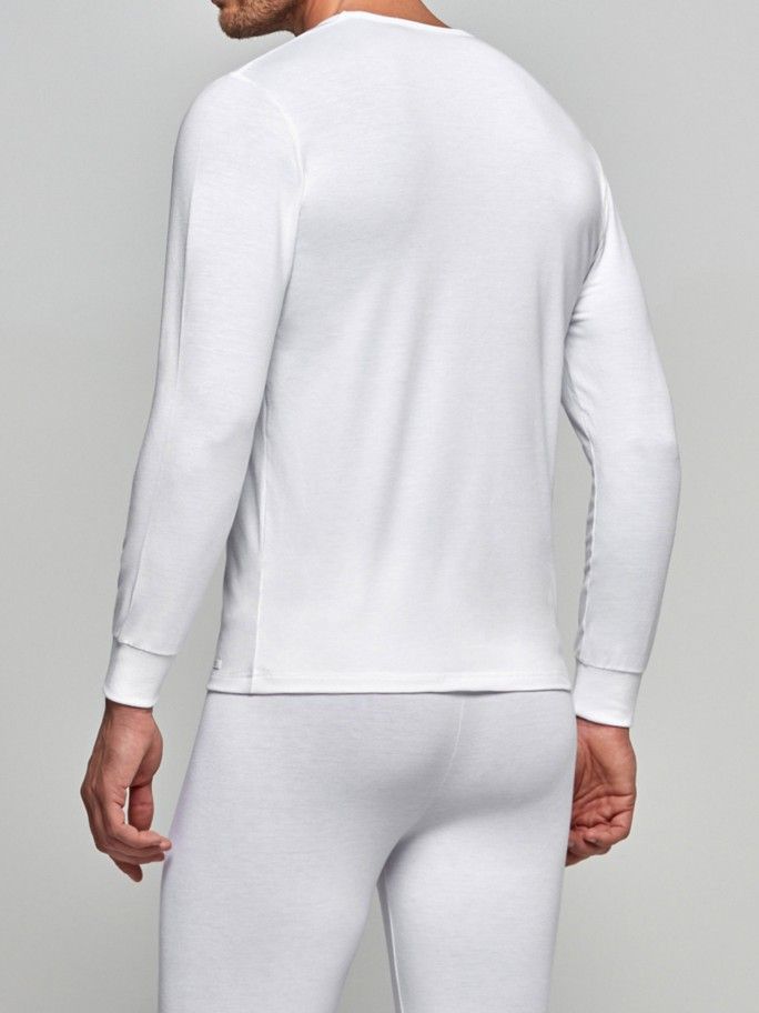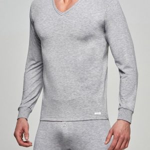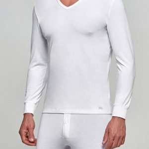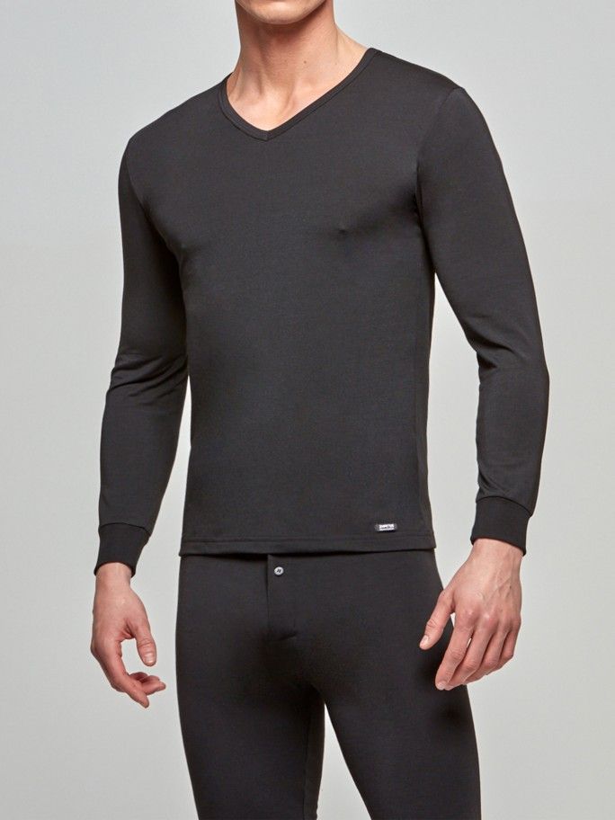 Camisola térmica com gola em V. Sem etiquetas interiores. Fabricado em Portugal.